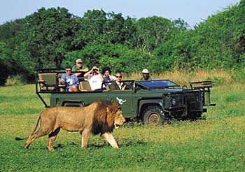 ここでは、熟練したレンジャーの案内により、四輪駆動のランドローバーで巡ることになる。野生動物は朝と夜に行動することが多いので、朝行われるモーニング・サファリ、夕方から夜にかけてのイブニング・サファリ(およびナイト・サファリ)がある。また、ワニやカバの水場まであるくウォーキング・サファリもある。それぞれに異なる生態を見ることができるとあって、動物保護区に欠かせない人気アトラクションだ。