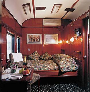列車編成は20両で、そのほとんどが1920年代の豪華列車を復元したもの。最大72人の乗客が一回で食事をするため、ダイニング・カーを2両にし、ダイナミックな眺望を楽しめるよう展望車はオープン・バルコニーとした。コンパートメントは設備が充実しているのはもちろんのことだが、ベッドを収納式にせず、ホテルのような造りになっているので、ゆったりとくつろげる。 |