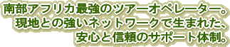 南部アフリカに精通したスタッフが、現地との強いネットワークで、きめの細かい手配とサービスを提供いたします。
