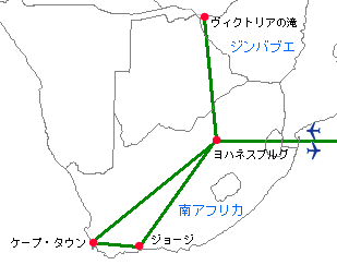 ヴィクトリア・フォールズ→ジョージ(ヨハネスブルグ経由) [ジョージ泊] |